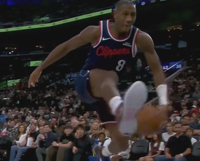 我喜歡這支快船的活力,這跟賽季初老登遍地的暮氣沉沉不同,這在團隊防守和快攻中很有意義。面斷大師鄧恩,扣籃王小瓊斯,他們或逼促著持球人,或旁敲側擊地搞偷襲,讓進攻方一刻不得安寧。他們無處不在,甚至積極性溢出了屏幕,以至于下面這次底線救球都救出了MJ胯下扣籃的既視感。