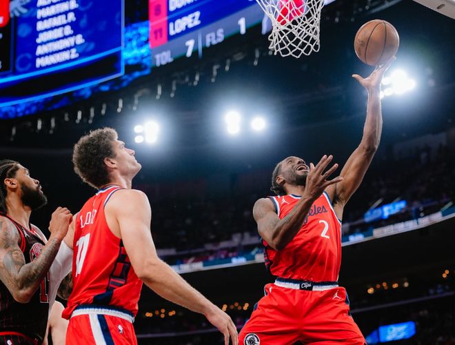 中段兩隊(duì)進(jìn)攻效率都不高,倫納德面對雙人和三人夾擊,明顯有些疲勞。還是倫納德?lián)寯嘣旆敢?guī)打破平衡,此后桑德斯續(xù)上三分,倫納德撤步中投終于打進(jìn)。公牛再度追上比分后,桑德斯反擊上籃+瓊斯續(xù)上三分球,半場結(jié)束時,快船63-57領(lǐng)先公牛。倫納德手感不是特別好,公牛則全員開花。進(jìn)入第三節(jié),倫納德拉開扔進(jìn)三分,公牛又開始夾擊!理查茲聯(lián)合布澤里斯再度縮小差距,倫納德拋投,大洛佩茲空切暴扣穩(wěn)定一下節(jié)奏。中段倫納德補(bǔ)籃打成2+1,隨后大洛續(xù)上三分,但公牛手感確實(shí)好,快船始終無法拉開分差。
