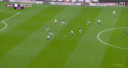 第12分鐘,薩默維爾單刀面對門將,輕挑破門,伯恩利0-1西漢姆聯