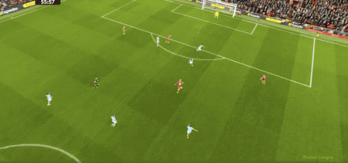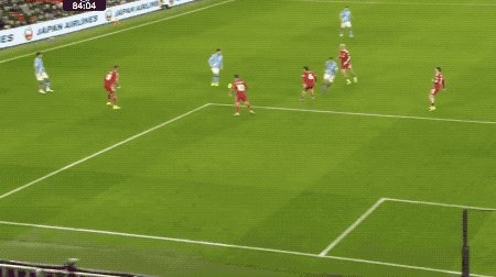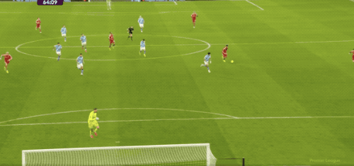 兩支球隊的部分戰術有些重合,那就是后腰游走到邊路,第34分鐘,羅德里下底傳中,哈蘭德不停球射門,阿利松注意力集中,將球沒收。