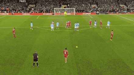 第74分鐘,利物浦獲得前場任意球,索博斯洛伊打出完美世界波,安菲爾德陷入瘋狂。