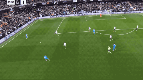 隨著比賽的進(jìn)行,瓦倫西亞逐漸開始回縮,全線防守,面對(duì)瓦倫西亞的鐵桶陣,皇馬也沒有什么太好的辦法。