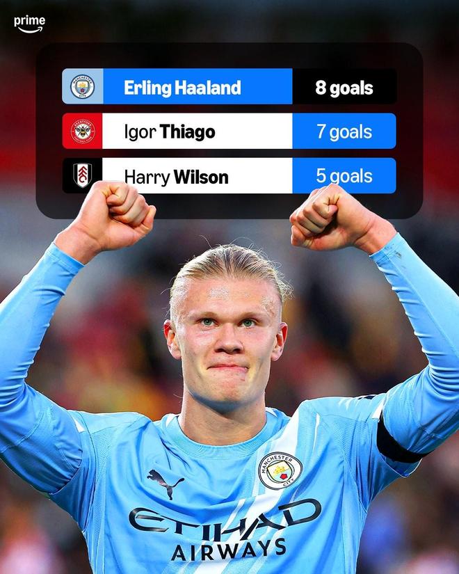 根據(jù)Prime Video Sport的統(tǒng)計(jì),哈蘭德本賽季至今已經(jīng)8次在英超比賽中打進(jìn)制勝球,同期在這項(xiàng)數(shù)據(jù)上他位列英超所有球員的第一位,領(lǐng)先于布倫特福德的前鋒伊戈?duì)?蒂亞戈(7球)以及富勒姆的邊鋒哈里-威爾遜(5球)。