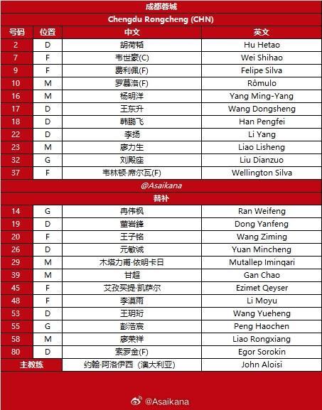北京時間2月10日20:15,亞冠精英賽聯賽階段比賽繼續進行,成都蓉城坐鎮主場迎戰武里南聯。賽前雙方首發陣容陸續公布:
