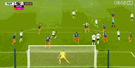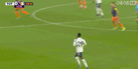 第65分鐘,薩爾頭球擺渡,阿奇-格雷扳平比分,熱刺1-1