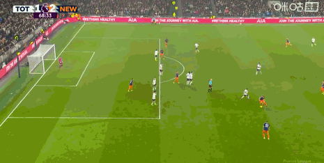第45+5分鐘,打破僵局,佳夫門前補射得分,紐卡1-0