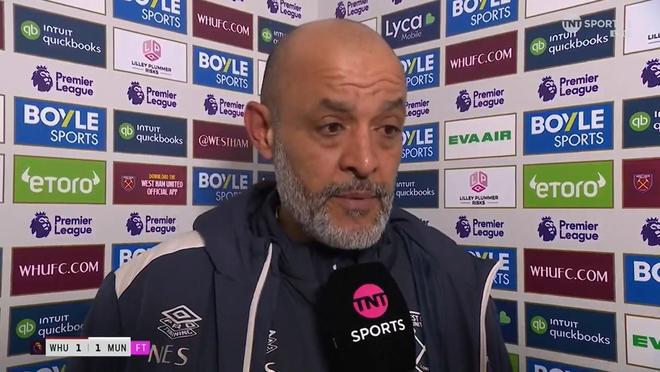 英超第26輪一場較量,西漢姆聯主場被曼聯絕平。賽后,鐵錘幫主帥努諾接受了TNT體育的采訪。