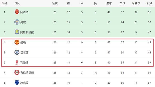 值得一提的是,除了曼聯(lián)之外,這一夜切爾西也沒(méi)能擊敗利茲聯(lián),他們?cè)谥鲌?chǎng)2-2戰(zhàn)平對(duì)手,也才拿到1分。截至目前,曼聯(lián)依然排名第四,切爾西則以1分之差,排名第五。雖然爭(zhēng)四2強(qiáng)都沒(méi)能獲勝,但是他們的位置,暫時(shí)還非常穩(wěn)固。