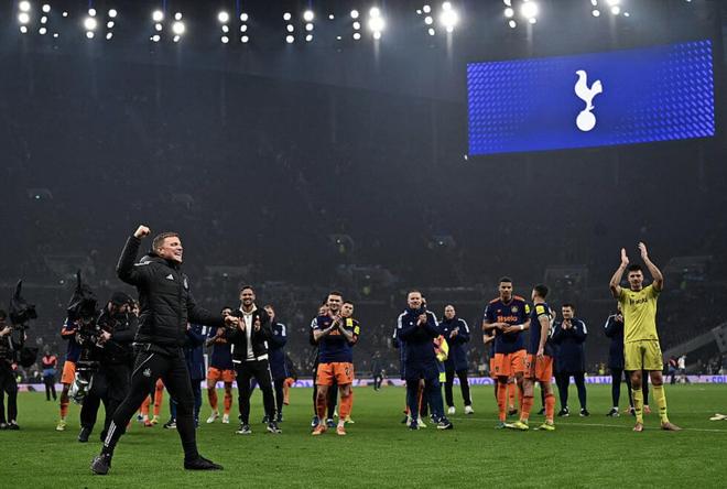 今晚,我們從托特納姆熱刺球場涌出,咯咯大笑、神采飛揚,雨水打濕了衣服卻依舊高唱著:“埃迪-豪的黑白軍團。”今晚,紐卡斯爾聯2-1取勝,其他一切都不重要——積分榜上我們排第10不重要,三天前輸給布倫特福德時響起的噓聲也不重要,那場失利仿佛讓某種珍貴的東西碎裂,賽后豪的聲音聽起來也支離破碎。