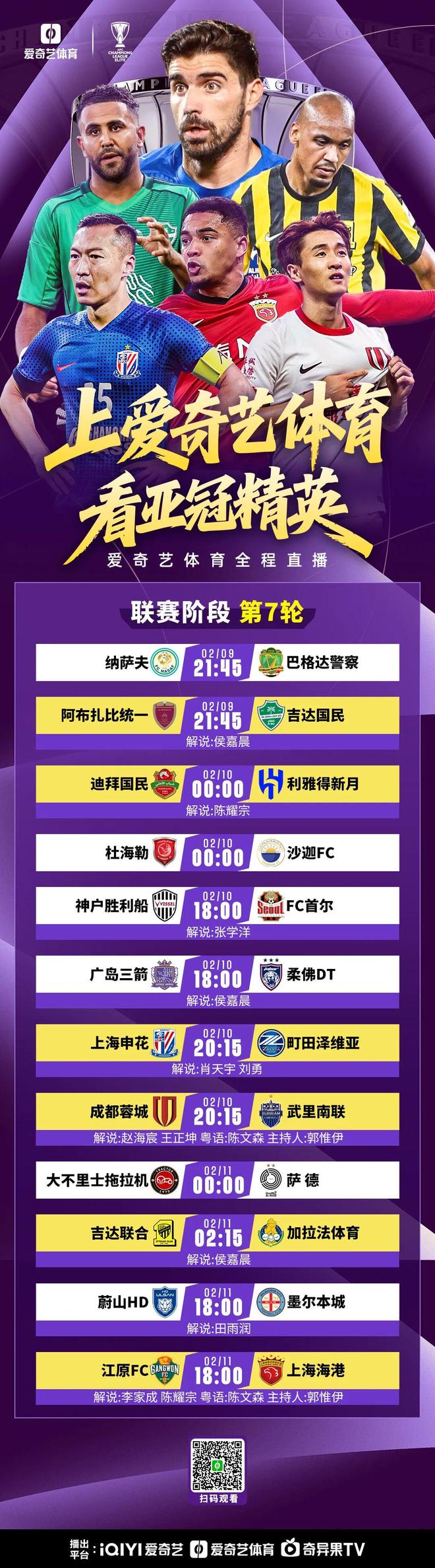 亞冠精英賽東亞區第7輪迎來中超球隊的關鍵戰役,2月10日至11日,上海申花、成都蓉城先后坐鎮主場打響卡位戰,上海海港則遠赴韓國開啟客場挑戰,三支中超球隊各有使命、全力出擊。