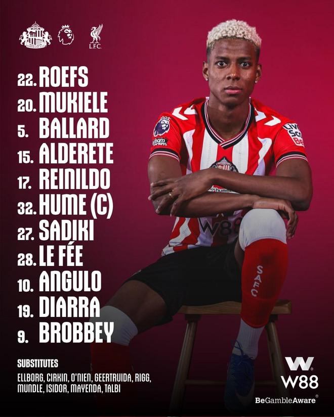 桑德蘭首發(fā):22-羅埃夫斯、20-穆杰萊、5-巴拉德、15-阿爾德雷特、17-雷尼爾多、32-休姆、27-薩迪基、28-勒費埃、10-尼爾松-安古洛、19-哈比卜-迪亞拉、9-布羅貝伊
