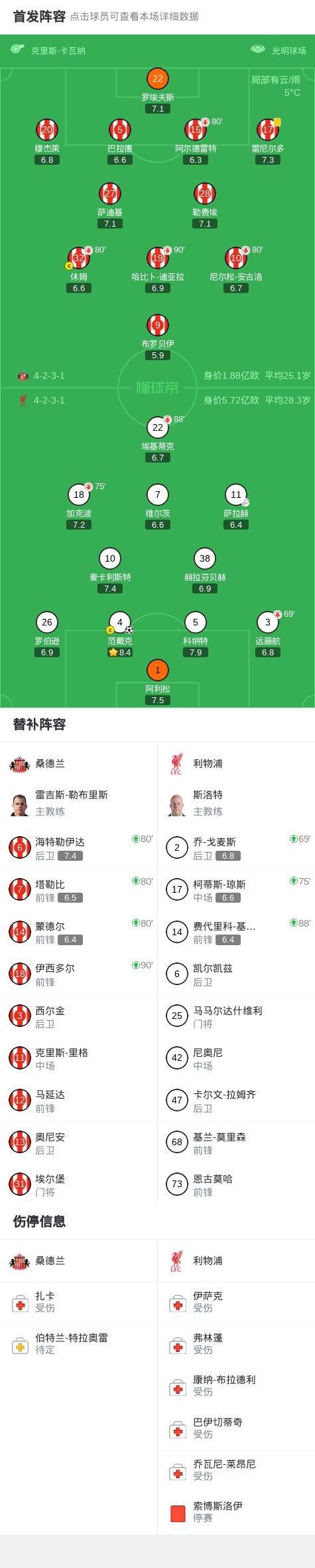 北京時間2月12日4:15,英超第26輪繼續進行,利物浦客場挑戰桑德蘭,本場主裁判為克里斯-卡瓦納。上半場,維爾茨低射中柱。下半場,薩拉赫角球助攻范戴克破門,遠藤航傷退。最終,利物浦1-0小勝桑德蘭。