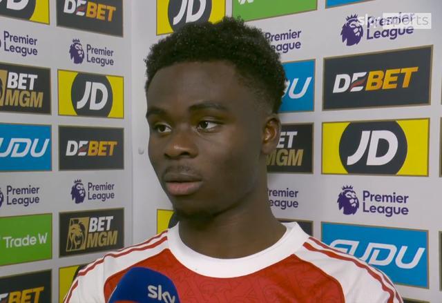 英超第31輪,阿森納在客場2-2戰平狼隊。賽后,阿森納前鋒薩卡接受了天空體育的采訪。