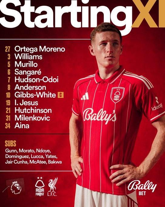 北京時間2月22日22:00,英超第27輪,利物浦客戰諾丁漢森林。賽前首發公布。