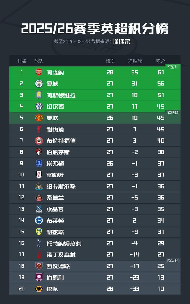 阿森納與曼城對于本賽季英超冠軍的爭奪愈演愈烈。目前,阿森納多賽一場以5分優勢繼續領跑。剩余的比賽,阿森納還將面對切爾西、布萊頓、紐卡等隊;而曼城還需面對切爾西、維拉、埃弗頓等隊。兩隊將于第33輪上演天王山之戰。