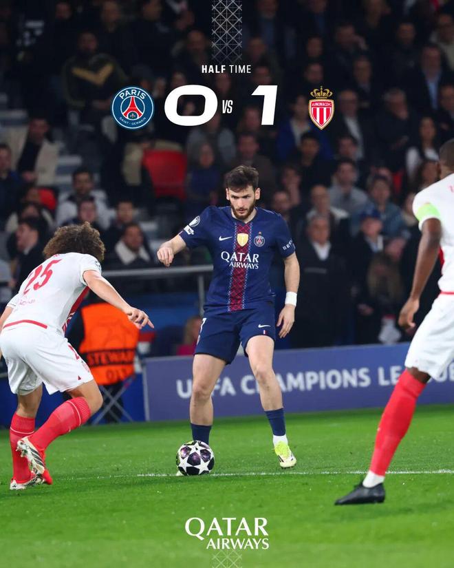 上半場比賽結束,我們暫時0-1落后摩納哥。