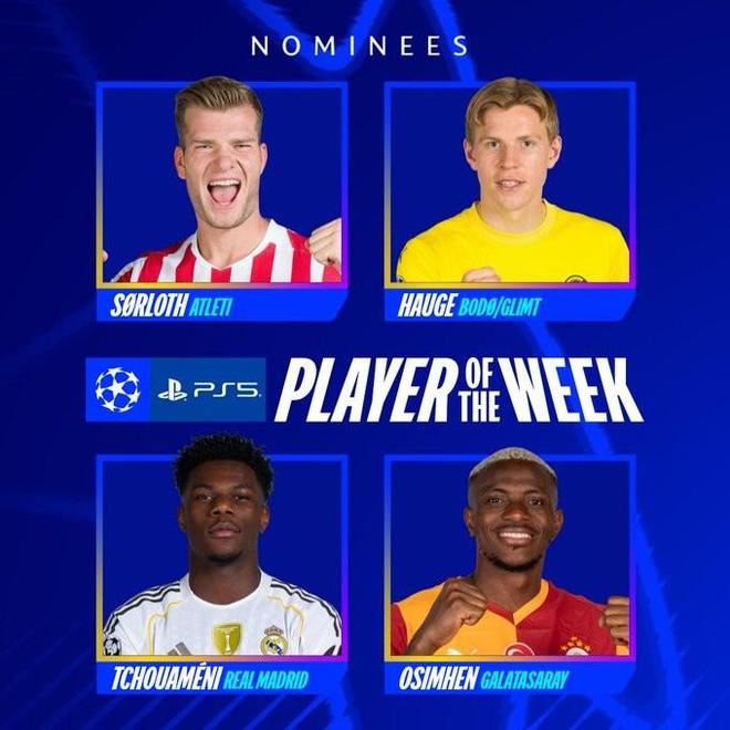 歐冠淘汰賽附加賽次回合比賽全部結束,歐冠聯賽官方公布了本周最佳球員候選,分別是瑟洛特、海于格、楚阿梅尼和奧斯梅恩。