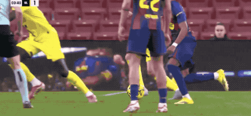 蓋耶在本方半場太過拖沓被搶斷,費爾明送出妙傳,亞馬爾冷靜推射,打破僵局。