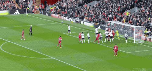 第43分鐘,薩拉赫開出角球,鮑恩后蹭解圍不遠(yuǎn),埃基蒂克冷靜回敲,麥卡利斯特外腳背凌空抽射建功,利物浦3-0遙遙領(lǐng)先,上半場結(jié)束,紅軍獲得7次角球,3次轉(zhuǎn)化為進(jìn)球。安菲爾德仿佛變成了定位球?qū)嶒?yàn)室。
