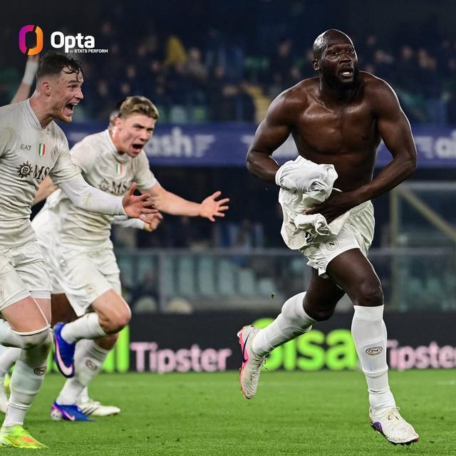 此役客場對陣維羅納,盧卡庫在比賽第96分鐘破門,幫助那不勒斯2-1絕殺對手。