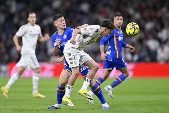 易邊再戰(zhàn)落后的皇馬展開猛烈反撲,第51分鐘,貢薩洛禁區(qū)內(nèi)背身回做,19歲小將皮塔克禁區(qū)弧頂左側(cè)迎球推射,這球力度和角度都不行,索里亞穩(wěn)穩(wěn)將球撲住。隨后皇馬這邊換人調(diào)整,皮塔克,阿拉巴和阿諾德被換下,羅德里戈,郝伊森和卡瓦哈爾替補登場。第61分鐘,皇馬右側(cè)角球機會,呂迪格爭搶中摔倒在地,主裁沒有吹罰點球。第76分鐘,皇馬又是右側(cè)角球制造機會,呂迪格小禁區(qū)內(nèi)超近距離搶點甩頭攻門,皮球幾乎是擦著門柱出了底線。補時階段,著急上火的皇馬球員上演輸人一幕,替補登場的馬斯塔托諾怒噴裁判,直接領(lǐng)到一張紅卡。1分鐘后赫塔菲和主裁也給個面子,利索哨響后踢球吹到第2張黃牌,2黃變1紅也被罰下場。最終皇馬苦攻無果,主場0:1爆冷輸球,遭遇2連敗。