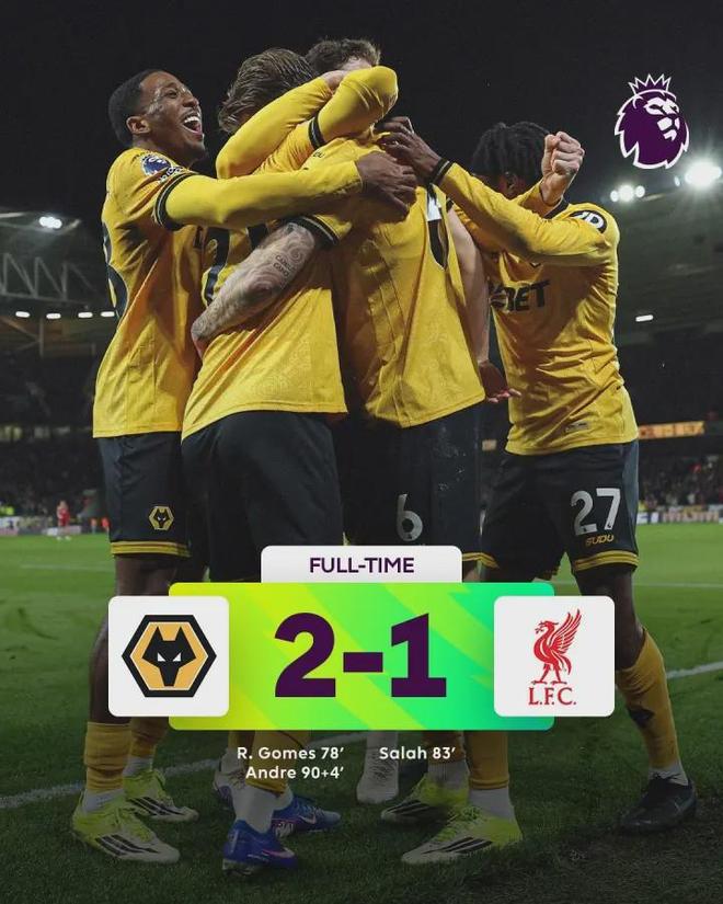 當(dāng)特林達德的射門經(jīng)喬·戈麥斯折射入網(wǎng)的那一刻,莫利諾克斯球場的歡呼聲幾乎掀翻屋頂。而客隊替補席上,利物浦主帥斯洛特的表情凝固成一片陰云——這是他們本賽季第5次在英超被補時絕殺,一項尷尬的新紀(jì)錄就此誕生。從衛(wèi)冕冠軍到“補時背景板”,利物浦究竟怎么了?
