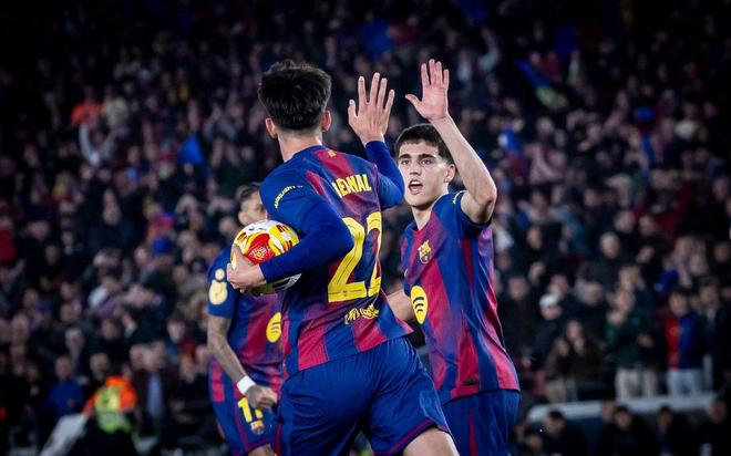第30分鐘,年僅17歲的亞馬爾左路連過兩人后橫傳,貝爾納爾門前冷靜推射破網,1-0!總比分改寫為1-4,沉寂已久的主場再度沸騰。