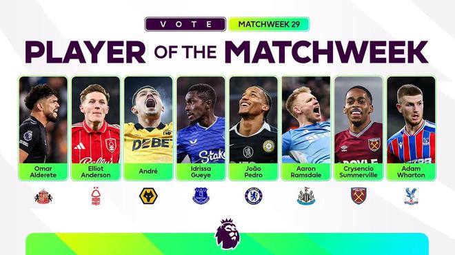 北京時(shí)間3月6日,英超官方公布了第29輪比賽最佳球員的候選名單,其中阿爾德雷特、埃利奧特-安德森、安德烈、蓋耶、若昂-佩德羅、拉姆斯代爾、薩默維爾和亞當(dāng)-沃頓在列,根據(jù)英超官方的公告,評(píng)選結(jié)果將于晚些時(shí)候公布。