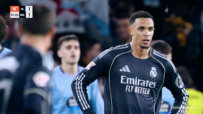 落后的塞爾塔短時間內,前場連續丟失球權,皇馬保持人盯人的壓迫逼搶。第26分鐘,塞爾塔后場長傳,斯韋德貝里拿球晃過阿諾德橫傳中路,跟上的博爾哈推射破門,1:1!扳平之后的塞爾塔,依舊保持高效的攻防模式,上半場雙方各入一球。