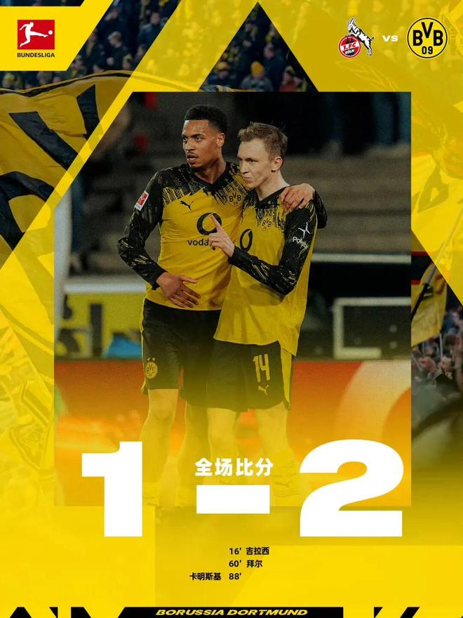 北京時間3月8日凌晨1點30分,多特蒙德做客挑戰科隆。上半場比賽,拜爾頭球吊入禁區,吉拉西飛身鏟射破門打,進個人聯賽第12球,普西對拜爾犯規吃到紅牌被罰下,科隆少一人作戰。易邊再戰,拜爾與布蘭特配合行云流水,前者打遠角得手完成傳射,卡明斯基終場前遠射破門。最終,多特蒙德2比1力克科隆。