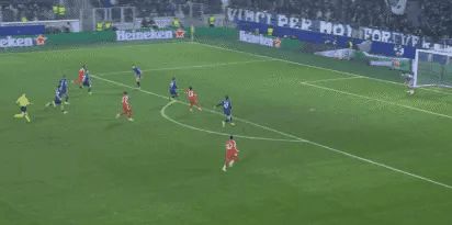比賽開始后,拜仁就火力全開,猛沖猛打,亞特蘭大后防線壓力過大。他們本場比賽使用雙前鋒,但是意義不大。
